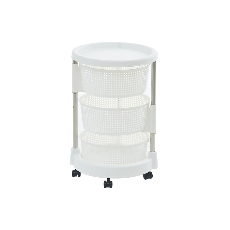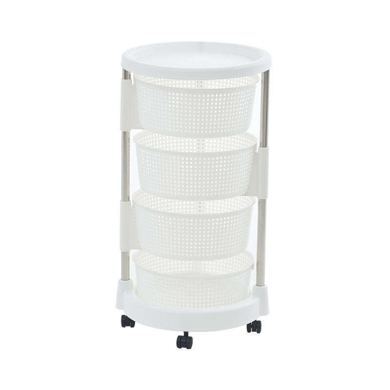 รถเข็นเก็บของในครัวพลาสติก 5 ชั้น ชั้นวางอาหารหมุนได้ พร้อมชั้นวางผักและผลไม้ แบบตั้งพื้นมีล้อ