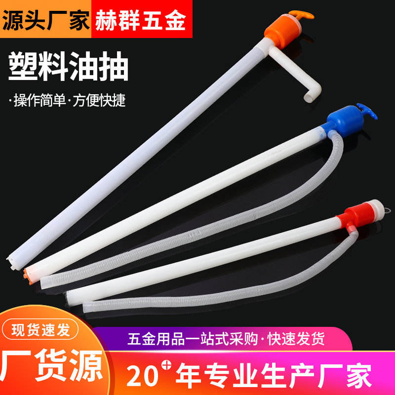 ปั๊มน้ำมันแบบมือหมุนพลาสติก 200 ลิตร พร้อมสายยางยืดหยุ่นสำหรับถ่ายน้ำมันเบนซินและน้ำ