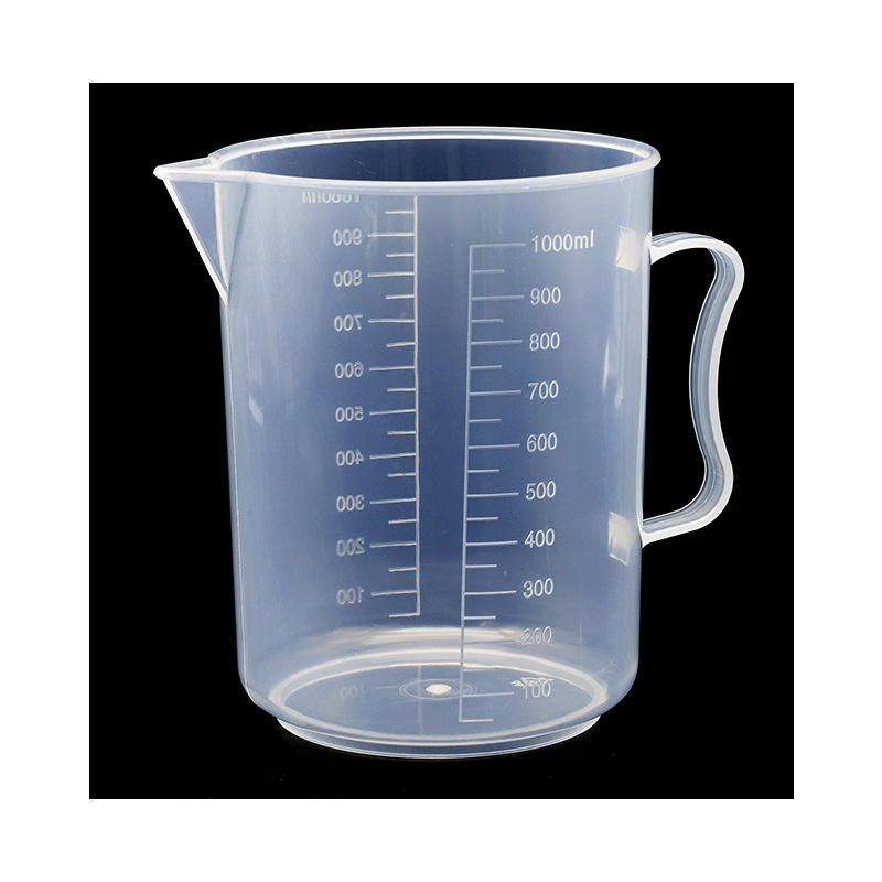 ถ้วยตวงพลาสติก 1000 มล. พร้อมหูจับและขีดบอกปริมาตรชัดเจนสำหรับใช้ในครัว