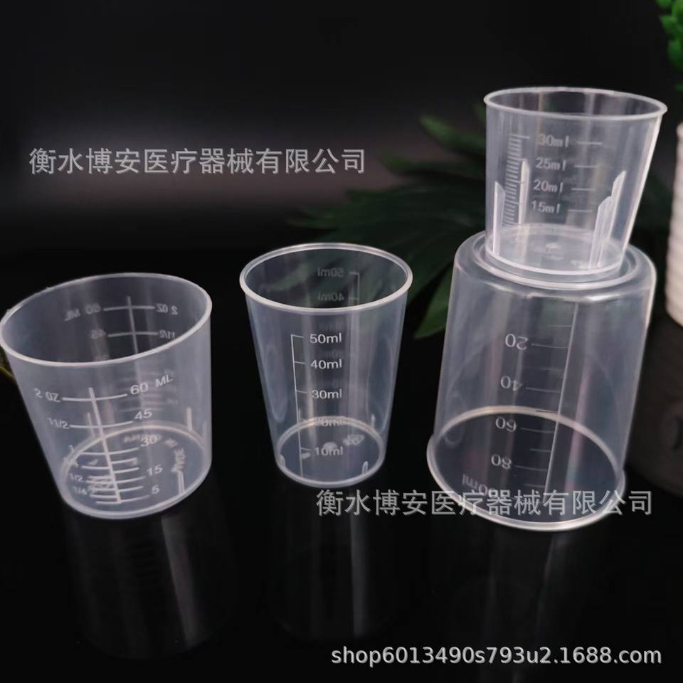 Plastic Measuring Cups 10ml 20ml 30ml 50ml 60ml 100ml Graduated Round Mouth For Laboratory Sampling General Packaging