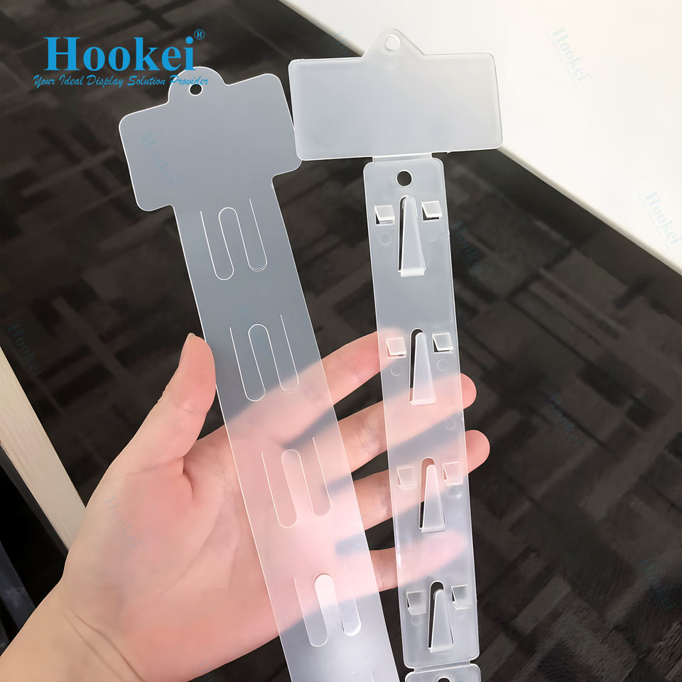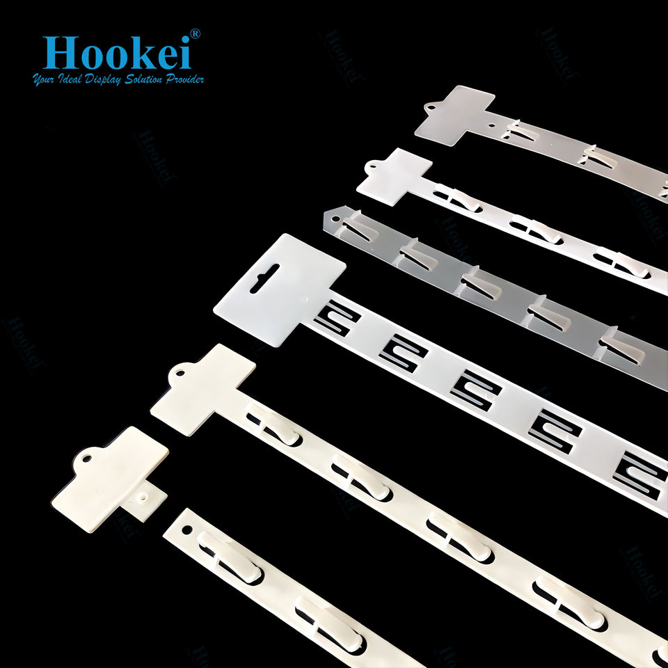 แถบคลิปหนีบพลาสติก PVC สำหรับแขวนแสดงสินค้าซุปเปอร์มาร์เก็ตโลหะพลาสติก