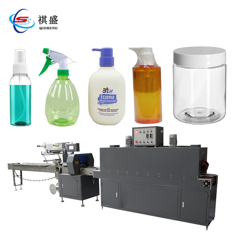 เครื่องห่อฟิล์มพีวีซีขวดเดียวเครื่องห่อแบบท่อหดด้วยความร้อนสำหรับขวดสเปรย์ทรงสี่เหลี่ยมทรงกลม