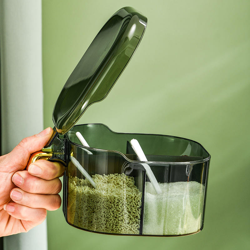 ขวดพลาสติกใส่เกลือพริกไทยเครื่องเทศ กล่องเก็บเครื่องปรุงรส พร้อมช้อน ชั้นวางเครื่องเทศในครัว รักษาความสดใหม่ อเนกประสงค์