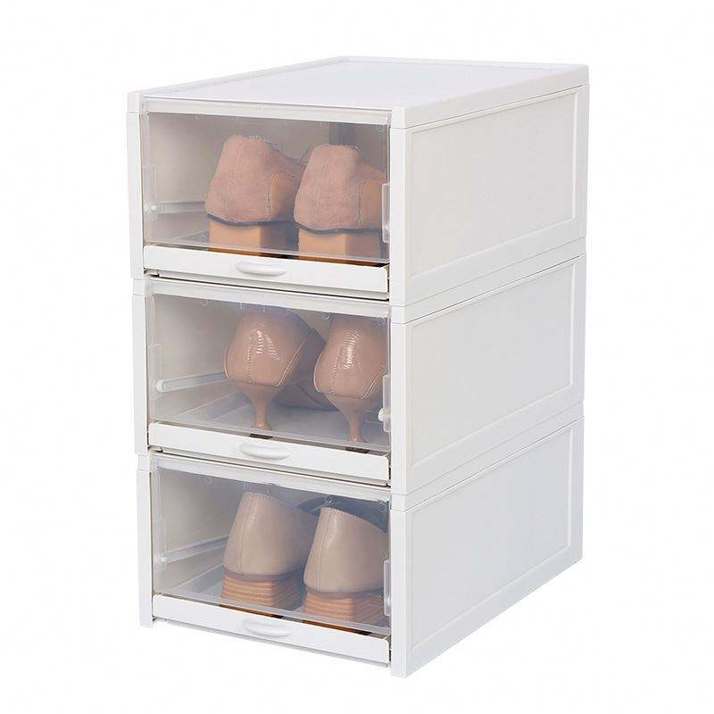 กล่องเก็บรองเท้าพลาสติกแบบซ้อนได้ กล่องใสแบบดึงออกได้ กล่องเก็บรองเท้าพลาสติกแบบซ้อนได้