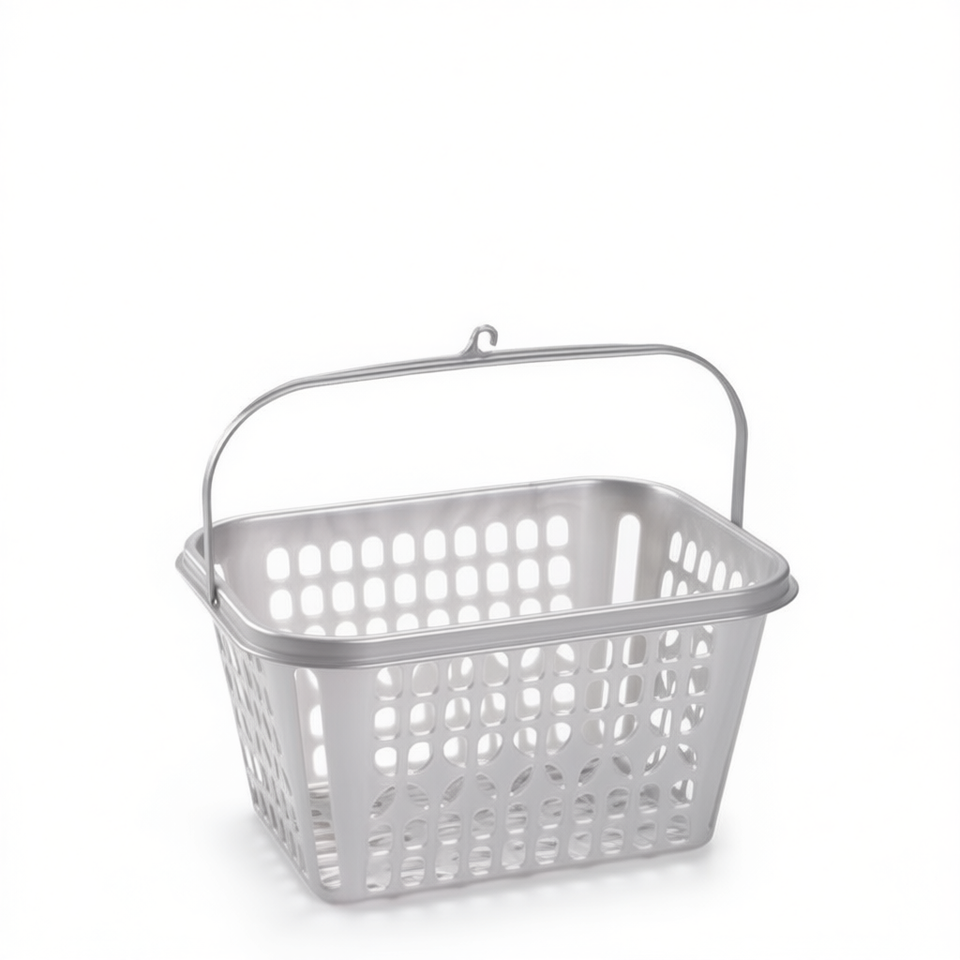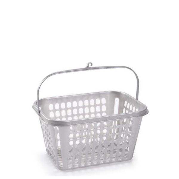 Plastic Storage Basket With Handle For Kitchen Organization Silver Color