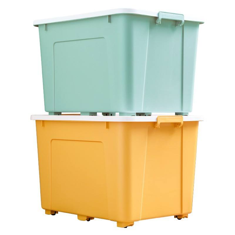 กล่องเก็บของพลาสติกทรงสี่เหลี่ยมผืนผ้าขนาดใหญ่พร้อมฝาปิดสำหรับเสื้อผ้าและผ้าห่มใช้ในบ้าน