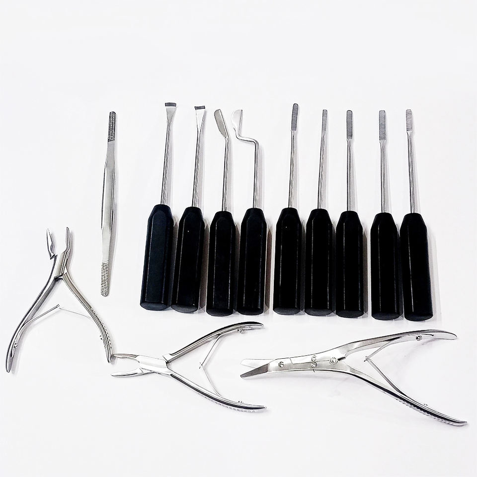 ชุดเครื่องมือรักษาหลังการผ่าตัดเสริมจมูก–13 ชิ้น ทำจากสแตนเลส