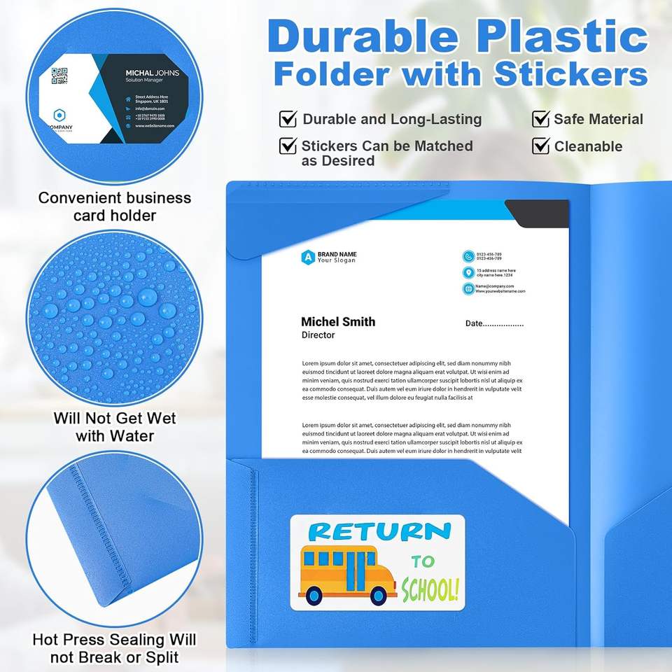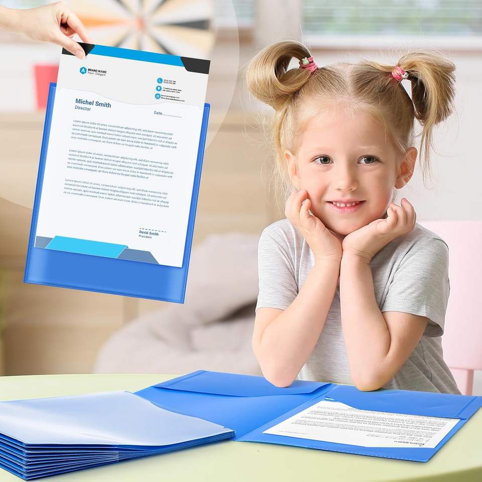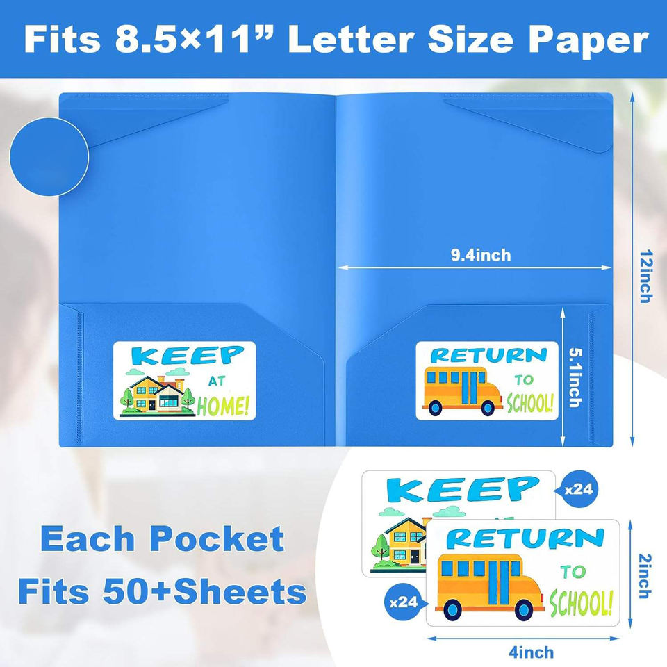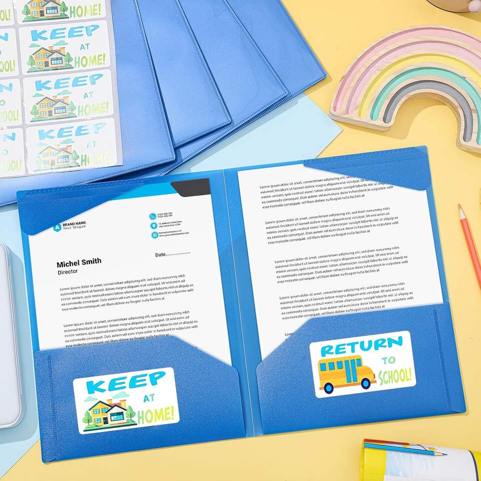 แฟ้มพลาสติกแบบนำกลับบ้านพร้อมช่องใสด้านหน้าและสติกเกอร์ แฟ้มใส่การบ้าน 2 ช่องสำหรับนักเรียน ผู้ปกครอง ครู ห้องเรียน