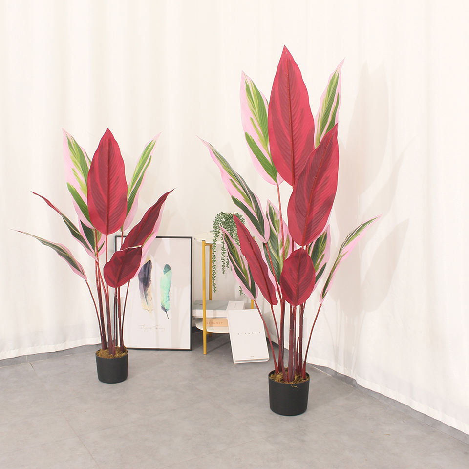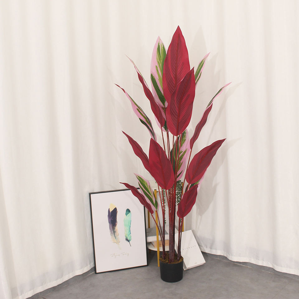 นกประดิษฐ์ต้นไม้กล้วยสำหรับเดินทางทำจากพลาสติกสีแดงใช้ในร่ม