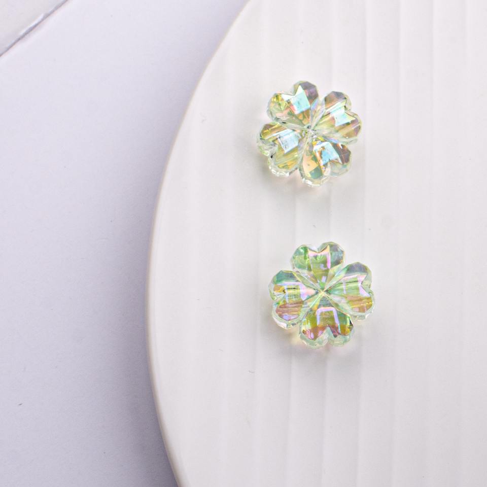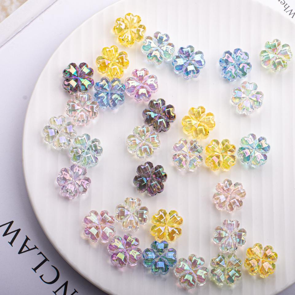 ชุบสีต่างๆโคลเวอร์โปร่งใสลูกปัดอะคริลิคเจาะรูรูปทรงผิดปกติทำด้วยมือ DIY สร้อยข้อมือสร้อยคอจี้