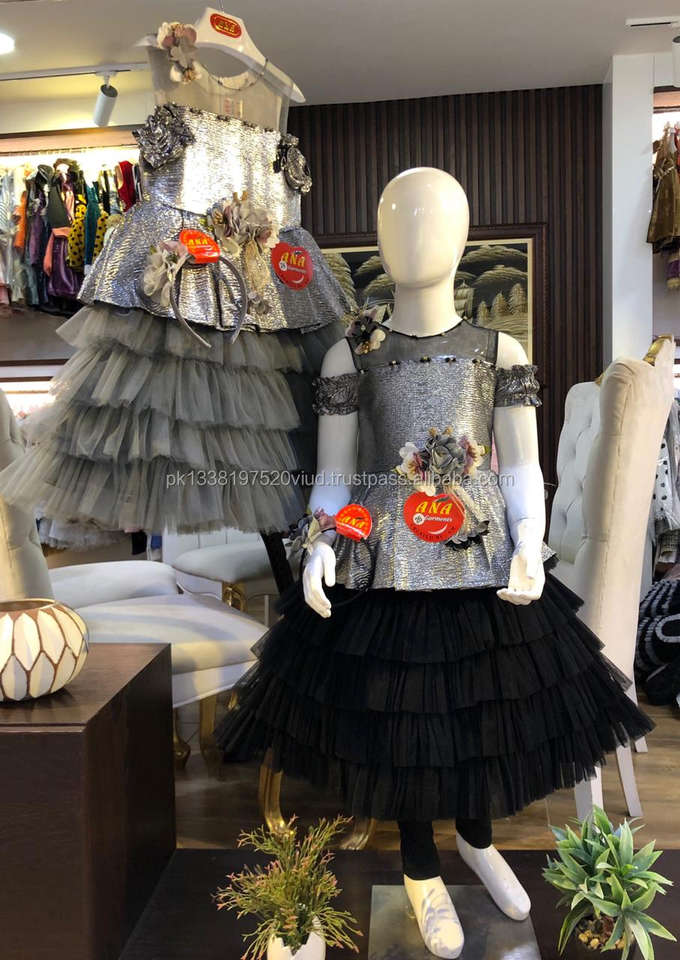Product Name:plated fabric net frocks with hairband black and gray color frocks