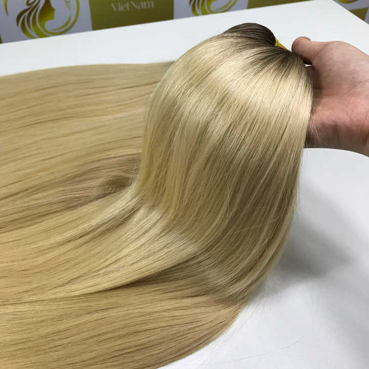 ผมต่อเวอร์จินแท้เวียดนามสีบลอนด์แพลตตินั่ม 100% คุณภาพสูง ทนทาน แบบสองชั้น ไมโครลิงค์ ตรงธรรมชาติ นุ่มสลวย