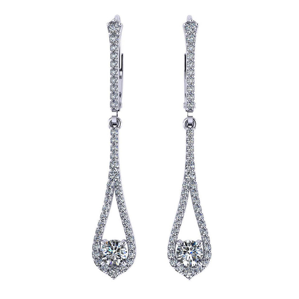ต่างหูเพชรเม็ดเดี่ยวดีไซน์แพลตตินั่มคลัสเตอร์ที่เพาะเลี้ยงในห้องปฏิบัติการ