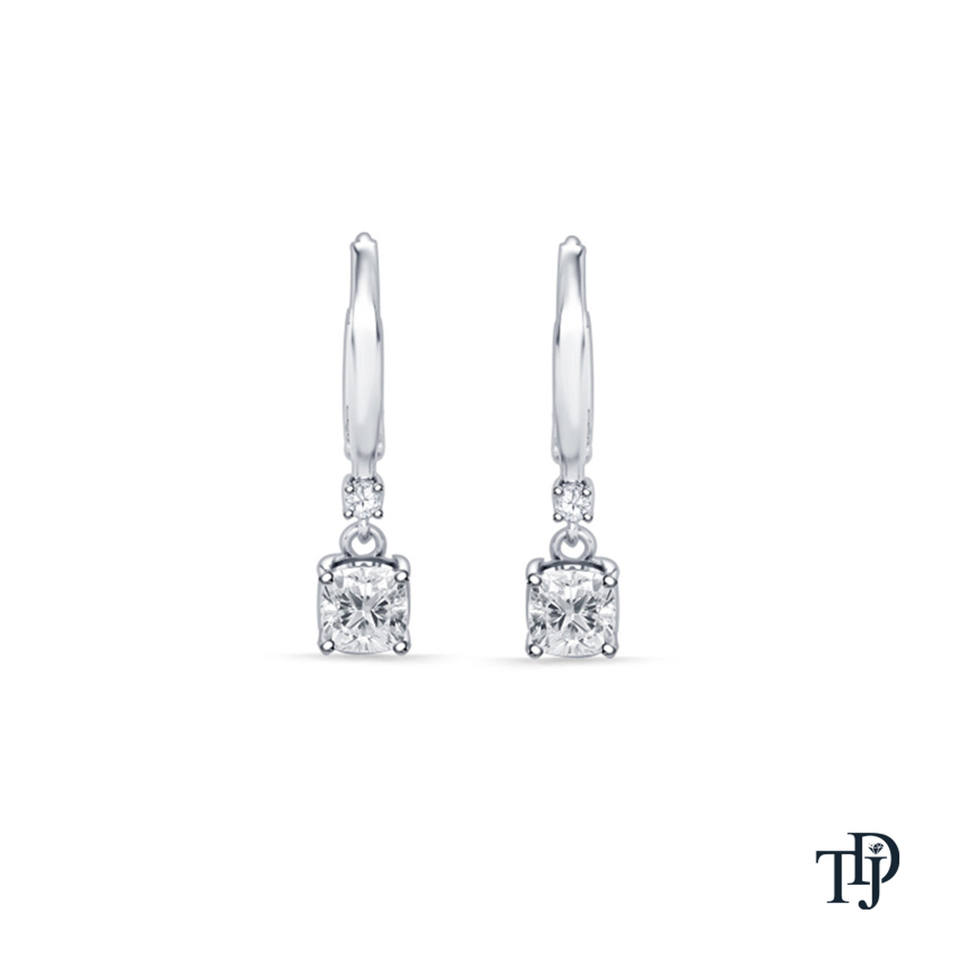 ต่างหูเพชรทรงคุชชั่นคัทเพลตตินั่มที่เพาะเลี้ยงในห้องปฏิบัติการ