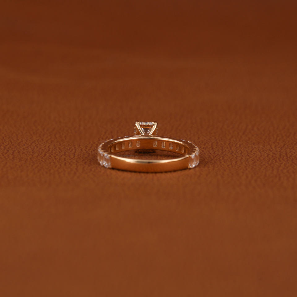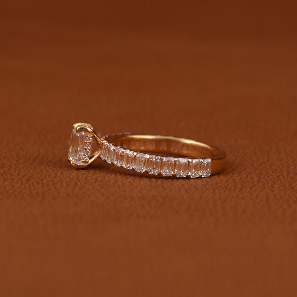 แหวนหมั้นเพชรสำหรับผู้หญิงแหวนหมั้นเพชรเม็ดเล็กสีทองมรกตชุบทองหรูหราประดับเพชรด้านข้าง