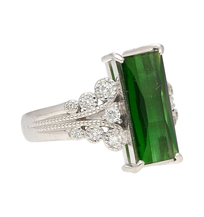 แหวนเพชรรูปทัวร์มาลีนและพลอยวินเทจสำหรับผู้หญิง