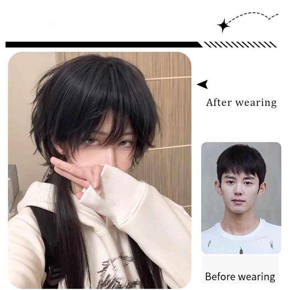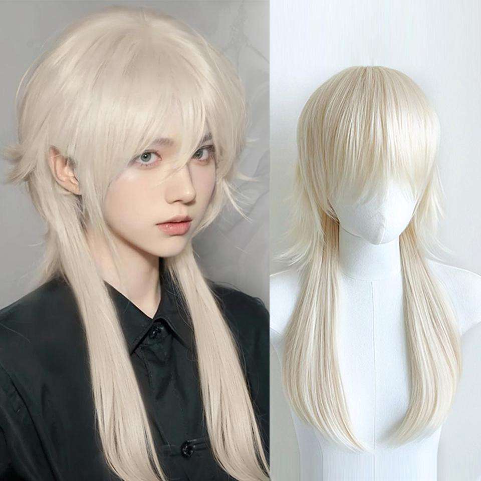 วิกผมยาวตรงสีแพลตตินั่ม พร้อมหน้าม้าปัดข้าง แบบเต็มศีรษะ สำหรับทุกเพศ สไตล์อนิเมะ ไม่ต้องใช้กาว ความหนาแน่น 100% เส้นผมทนความร้อนสูง