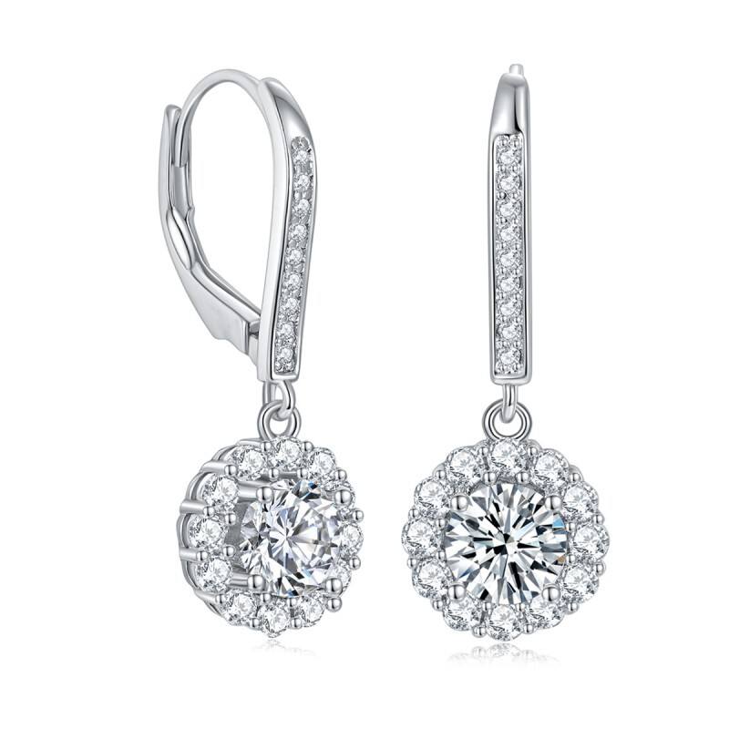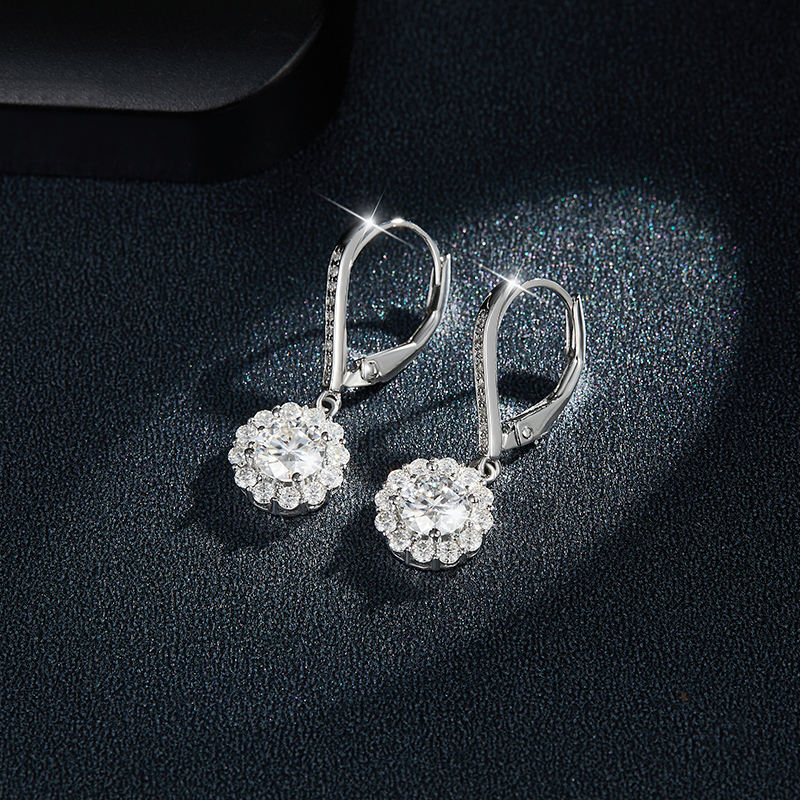 ต่างหูหินซิลิโคนโมอิสซาไนต์ทรงกลมชุบแพลตตินั่ม 0.5 กะรัต 5 มม. พร้อมใบรับรอง GRA