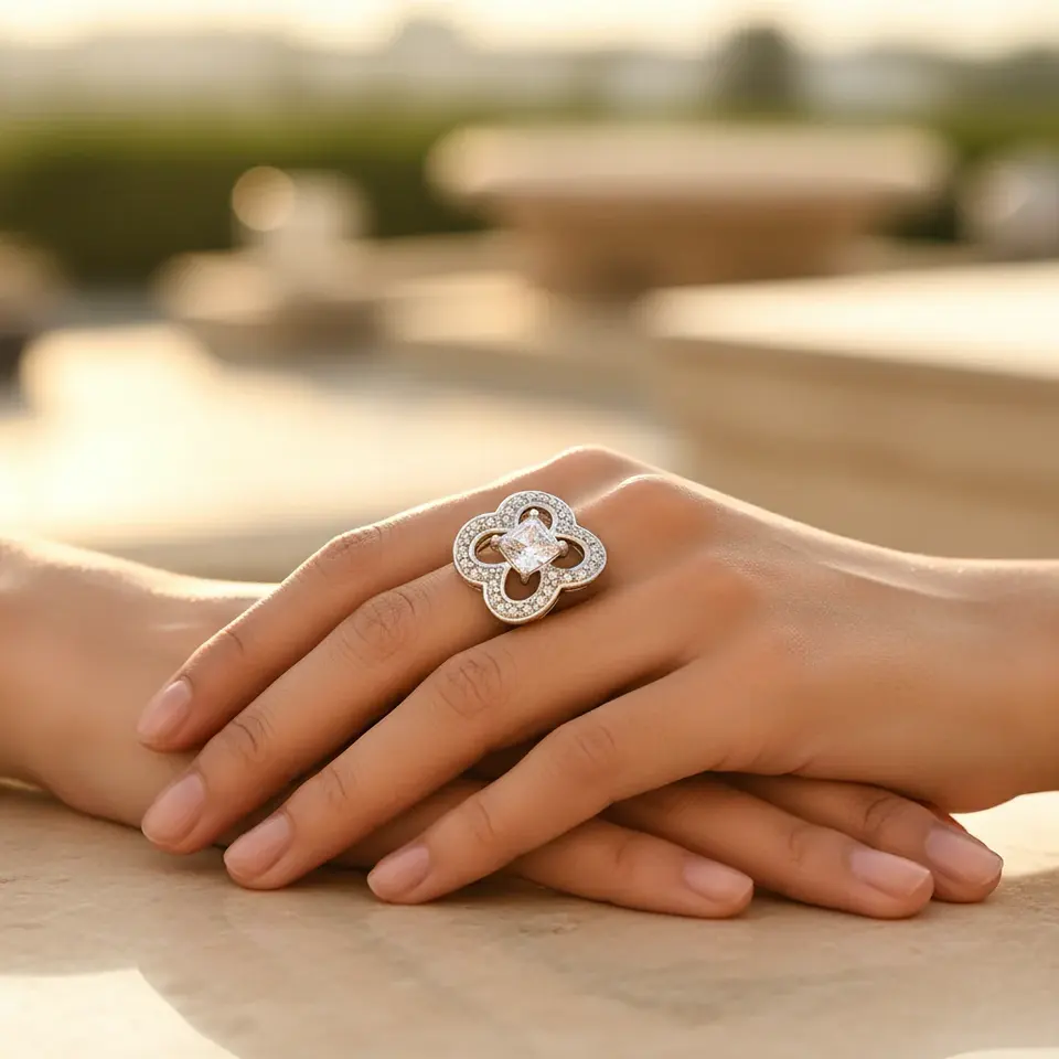 แหวนเพชรทรงเหลี่ยมมรกตชุบแพลตตินัมโรเดียม สำหรับเป็นของขวัญแทนคำมั่นสัญญาสุดโรแมนติกสำหรับผู้หญิง