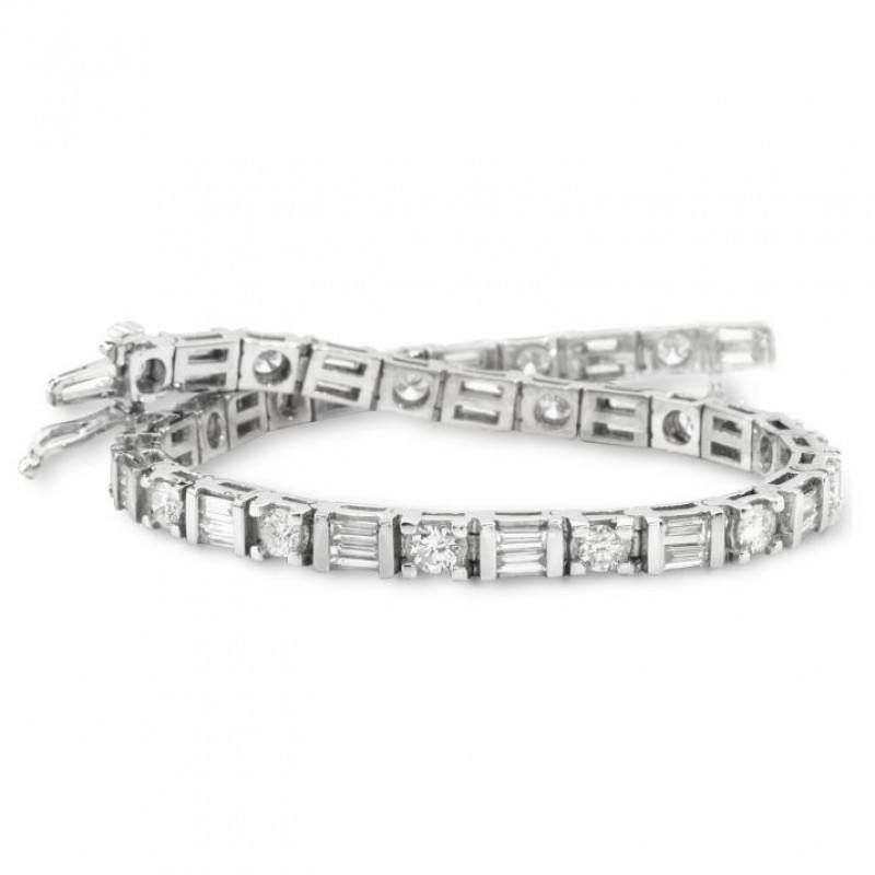 สร้อยข้อมือเทนนิสแบบแพลตตินั่มทรงกลมเดี่ยวและทรงบาแกตต์คู่
