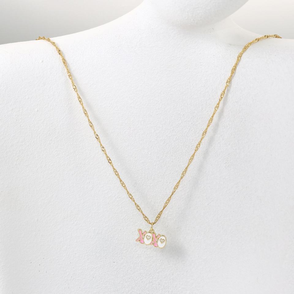 สร้อยคอเคลือบทอง น้ำหนักเบา ประกายเงางาม ลายหัวใจสีชมพูประกายระยิบระยับ ตัวอักษรแบบคursive รูปแบบความรัก ประดับด้วยเคลือบสีแดงวิบวับ