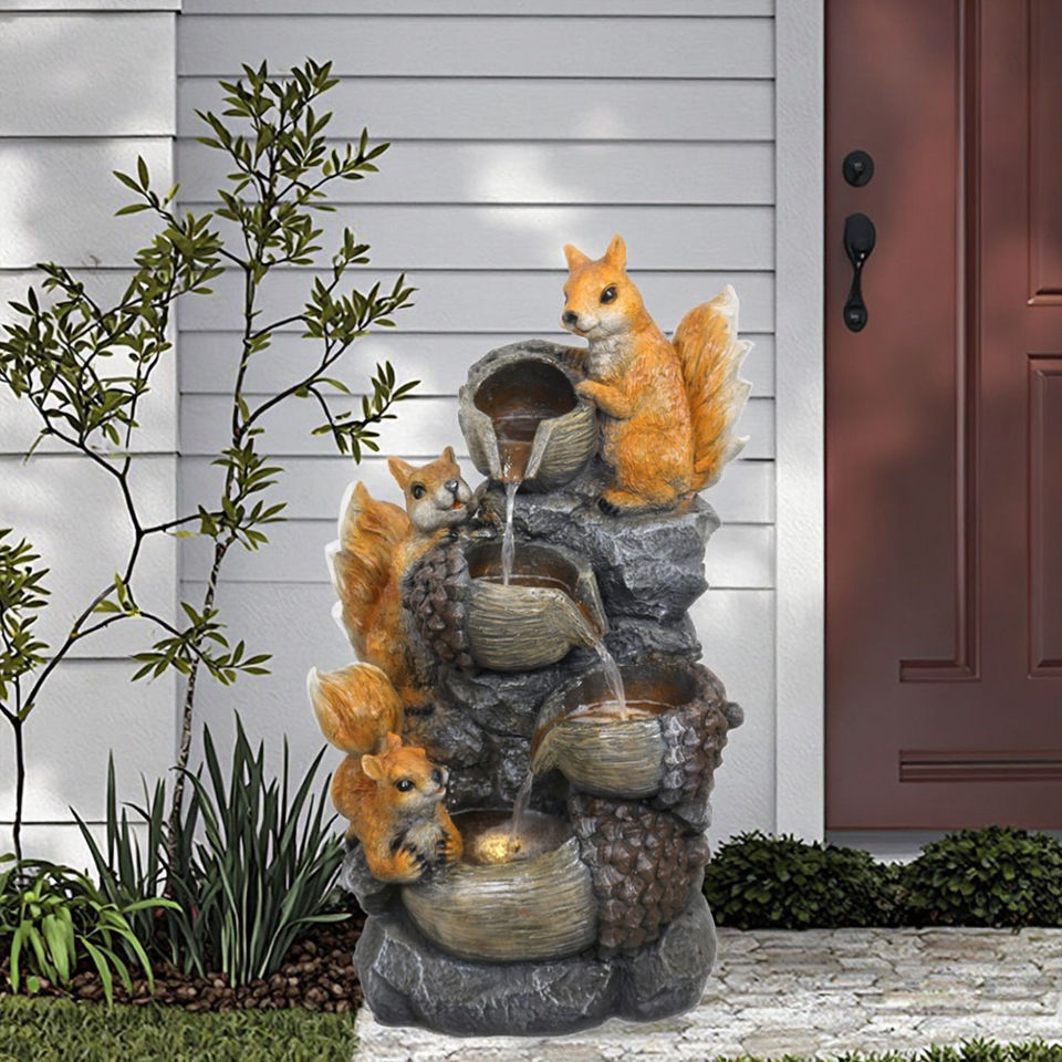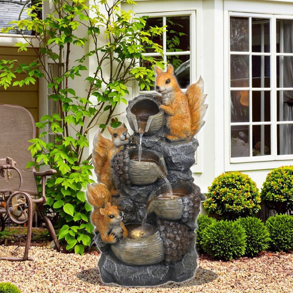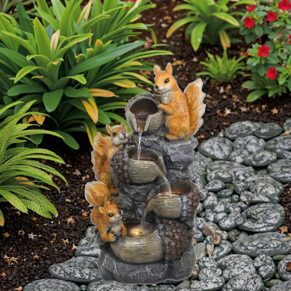 น้ำพุรูปกระรอกขี้เล่นตกแต่งสวน ทำด้วยมือ ทนทานต่อสภาพอากาศ ทำจากโพลีเรซิ่น เหมาะสำหรับสวน ลานบ้าน และสนามหลังบ้าน