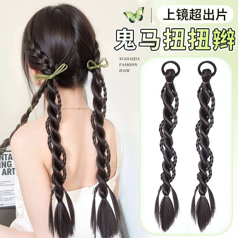วิกผมทรงหางม้าแบบถักเปียเกลียวสไตล์เกาหลี ทำจากเส้นใยทนความร้อนสูง ถักด้วยมือ สำหรับผู้หญิง ให้ลุคสวยแบบเกาหลี