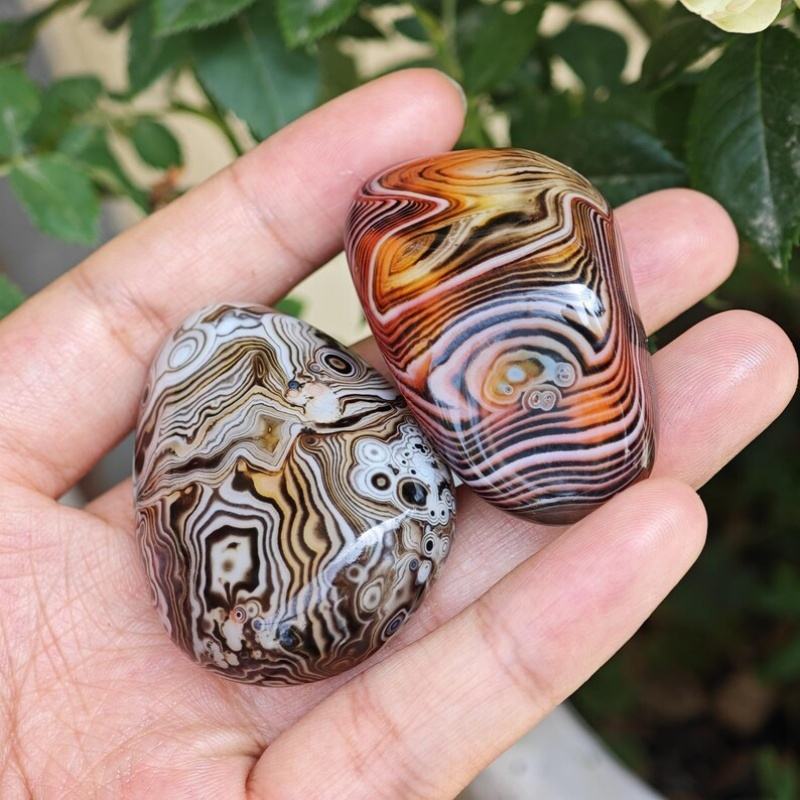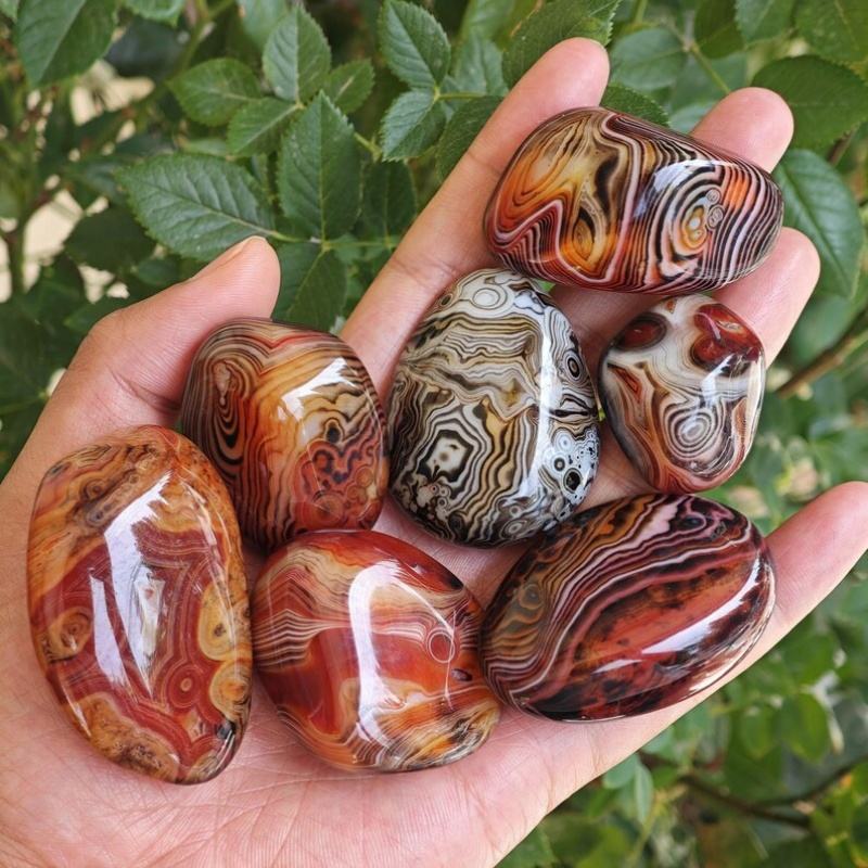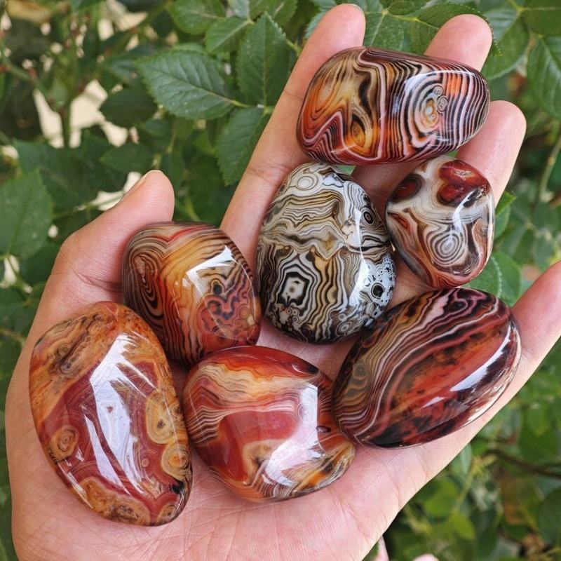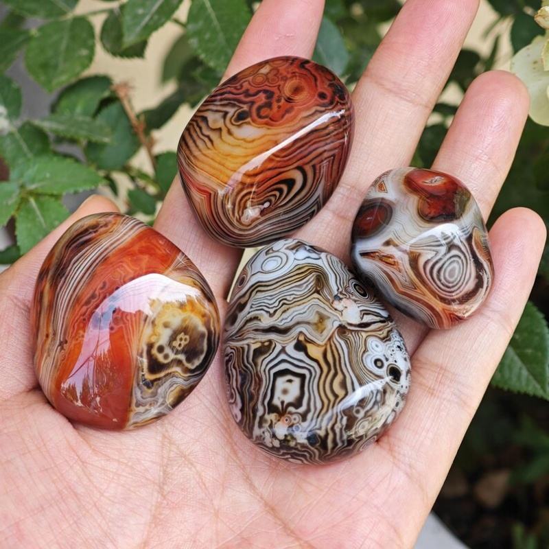 หินอาเกตธรรมชาติทรงแบนหุ้มด้วยผ้าไหมขัดเงาด้วยมือ เหมาะสำหรับสะสมและตกแต่งบ้าน