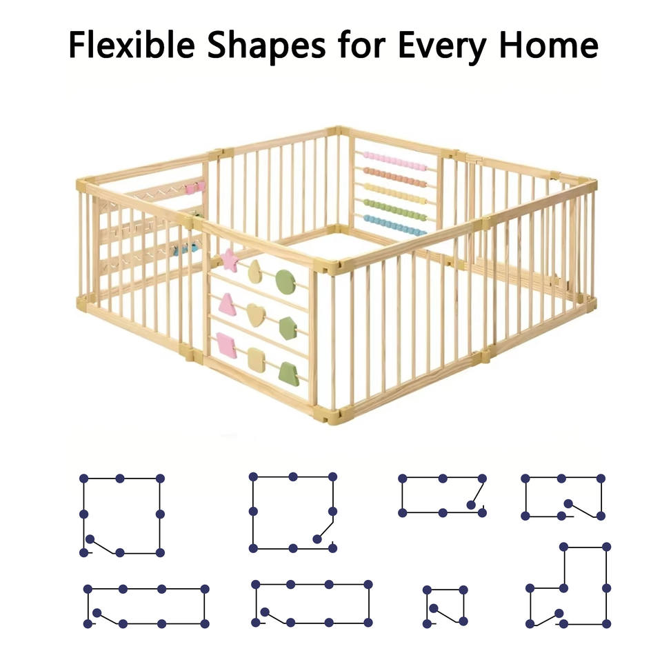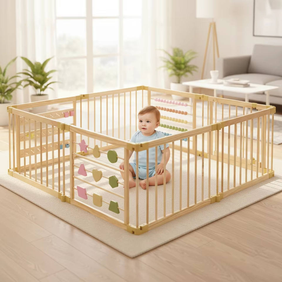 คอกกั้นเด็กแบบประกอบง่าย ทำจากไม้ พร้อมฟังก์ชั่นครบครัน ใช้เป็นเตียงเด็กเล็ก เตียงนอนแบบ Montessori และเตียงคอกกั้นเด็ก