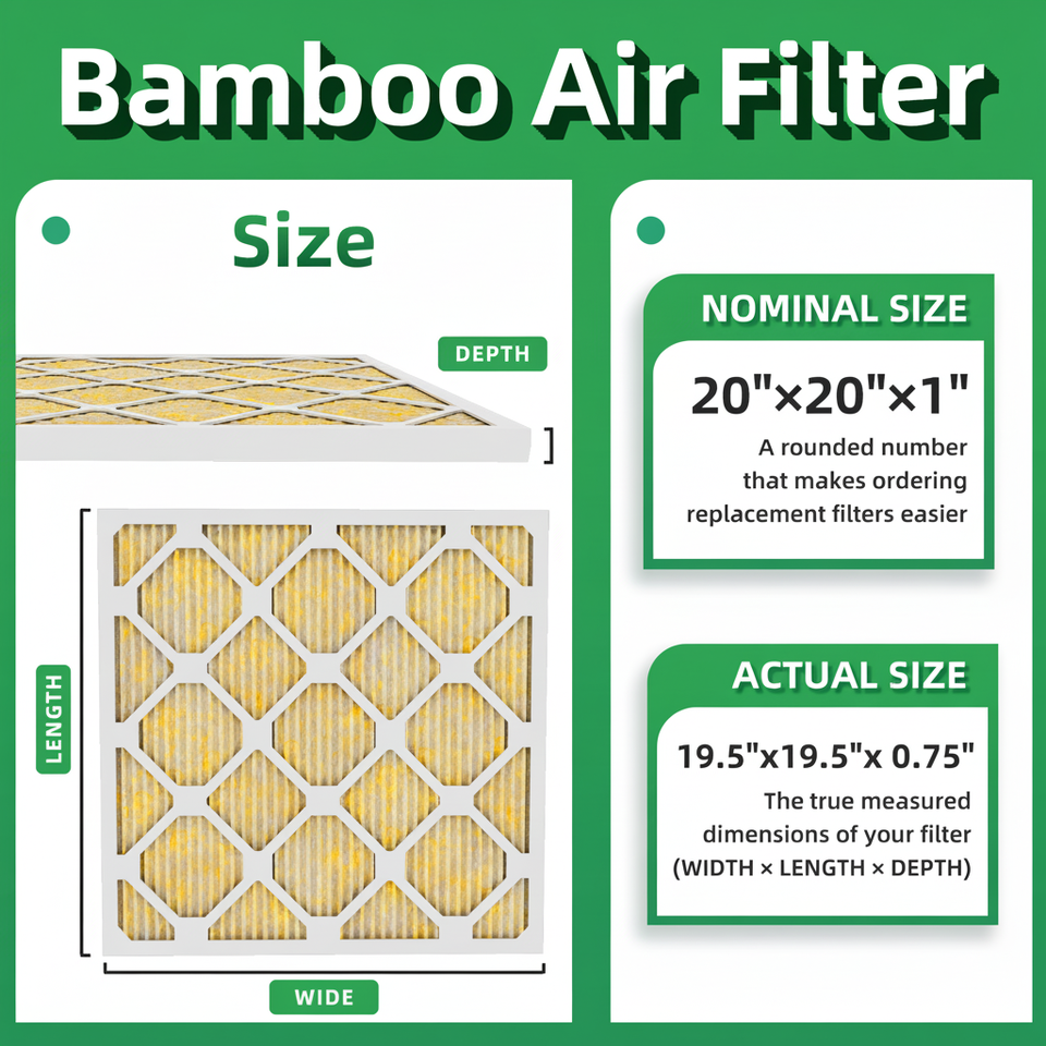 แผ่นกรองอากาศแบบจีบสำหรับเครื่องปรับอากาศและเครื่องทำความร้อน ขนาด 20x20x1 นิ้ว มาตรฐาน MERV13 ใยไผ่ ประสิทธิภาพการกรองฝุ่นสูง รุ่น F6-H14 สำหรับใช้ในบ้าน