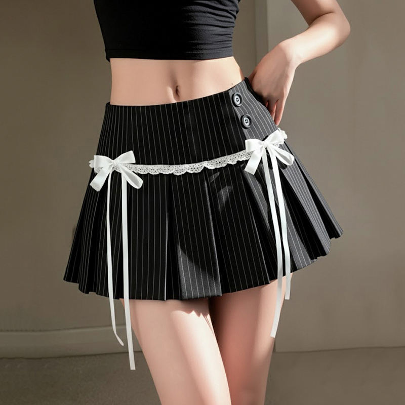 กระโปรงมินิจีบผู้หญิงลายทางสีสันสดใสพร้อมโบว์ Y2K สไตล์นักเรียนสไตล์พรีปปี้ฤดูใบไม้ผลิธรรมชาติลำลอง