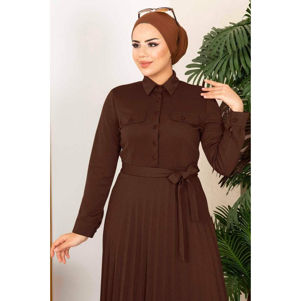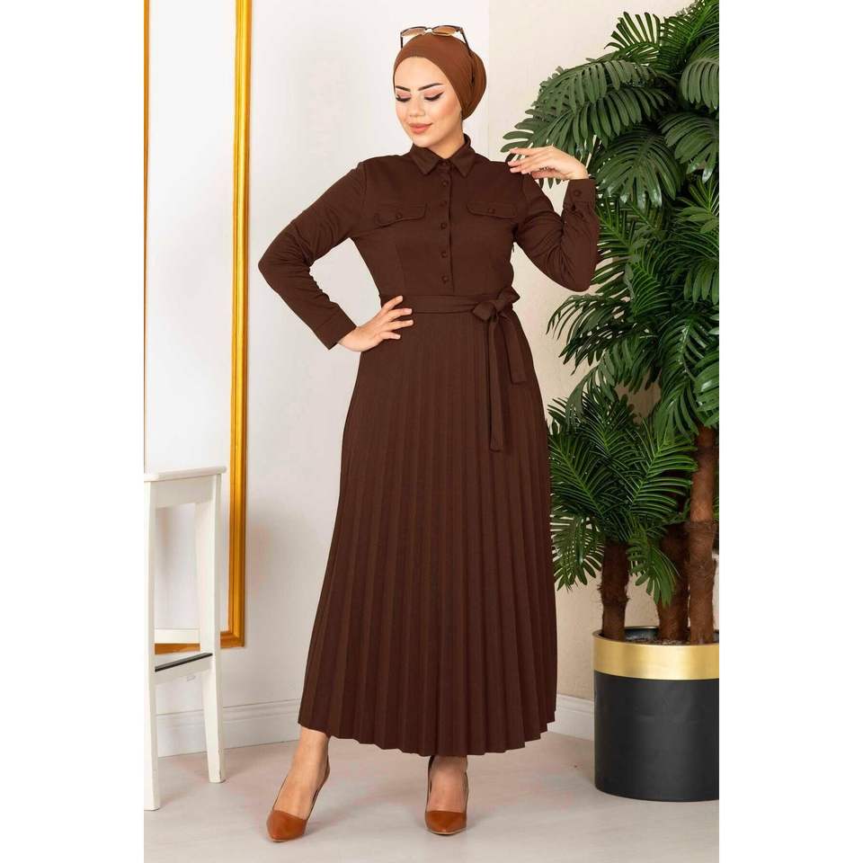 กระโปรงจีบชุดเดรสสุภาพสีน้ำตาล100MD21515