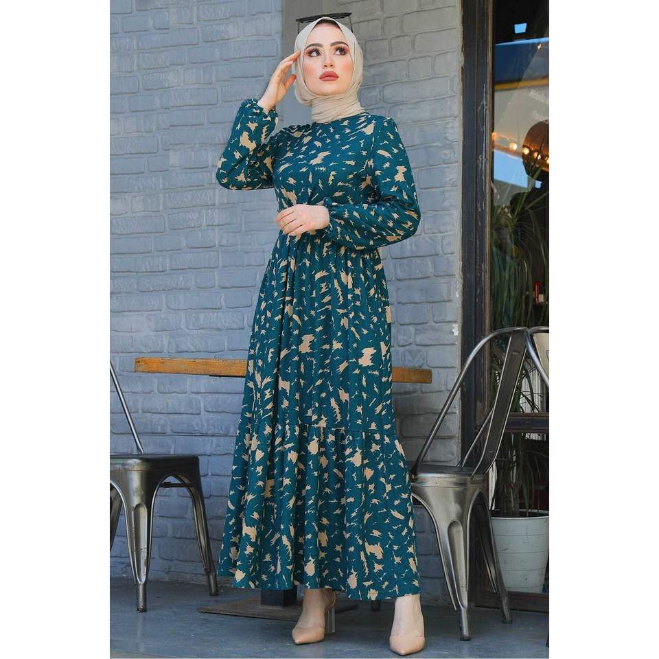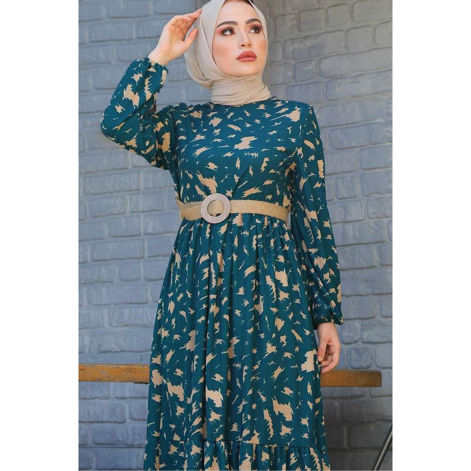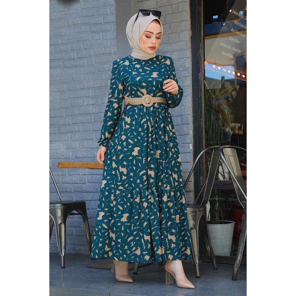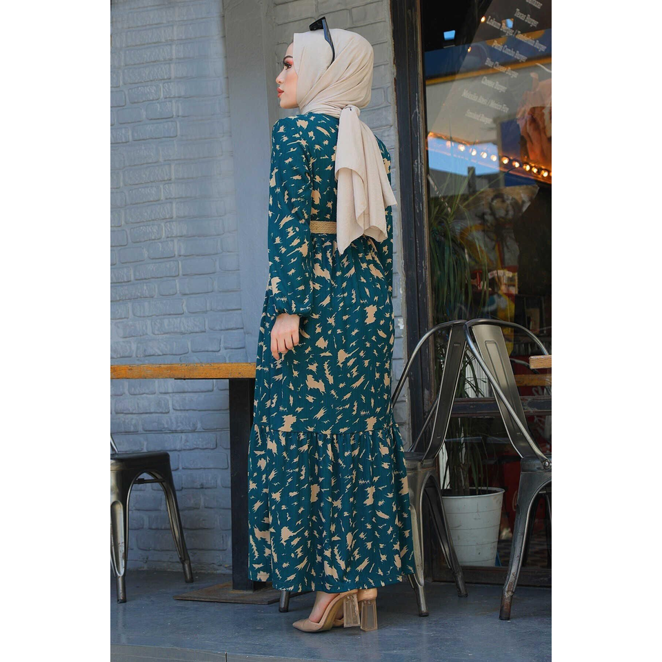 กระโปรงจีบเอวชุดเดรสสุภาพสีเขียว17647-3