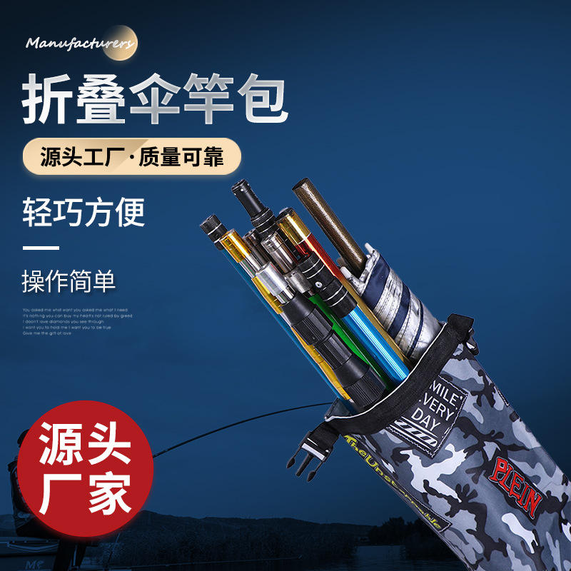 กระเป๋าใส่คันเบ็ดแบบพับได้เพลน 130 ซม. ผ้าอ็อกซ์ฟอร์ดกันน้ำ ทนทานต่อการสึกหรอ กระเป๋าเก็บของอเนกประสงค์พร้อมหูหิ้วด้านบน
