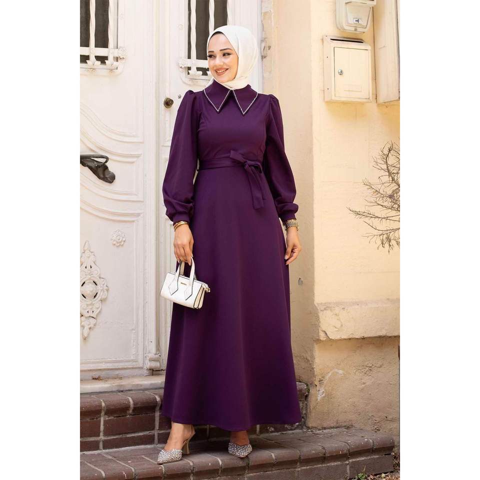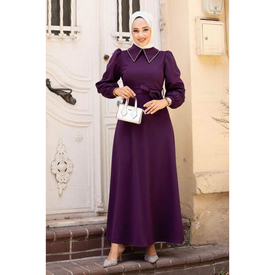 ชุดเดรสฮิญาบแขนเสื้อเชิ้ต