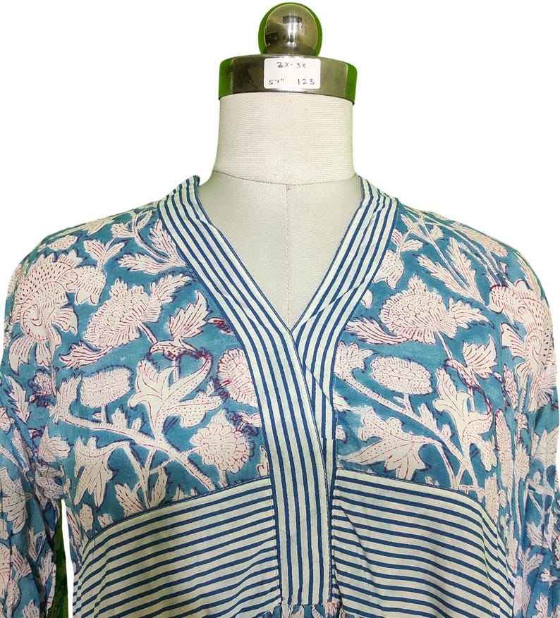 เดรสผ้าฝ้ายอินเดียไซส์ใหญ่ 2X 3X ลายดอกไม้พิมพ์มือ สไตล์โบฮีเมียนสำหรับฤดูร้อน ความยาว 57 นิ้ว คุณภาพพรีเมียม