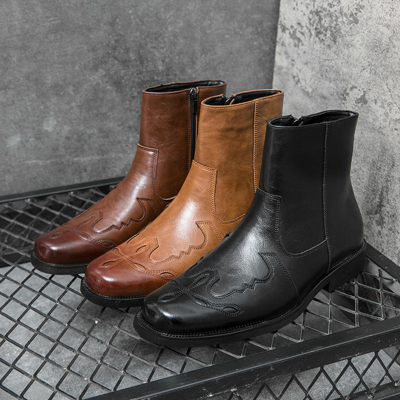 รองเท้าบูทคาวบอยสไตล์ตะวันตก ไซส์ใหญ่ 46 หนังแท้ ผูกเชือก พื้นยาง ดีไซน์ทันสมัย รองเท้าบูทข้อเท้า ใส่ได้ทุกฤดู