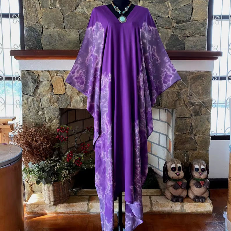 เดรสยาวทรงโบฮีเมียนผ้าเรยอนลายมัดย้อมแบบชิโบริ ไซส์พลัส