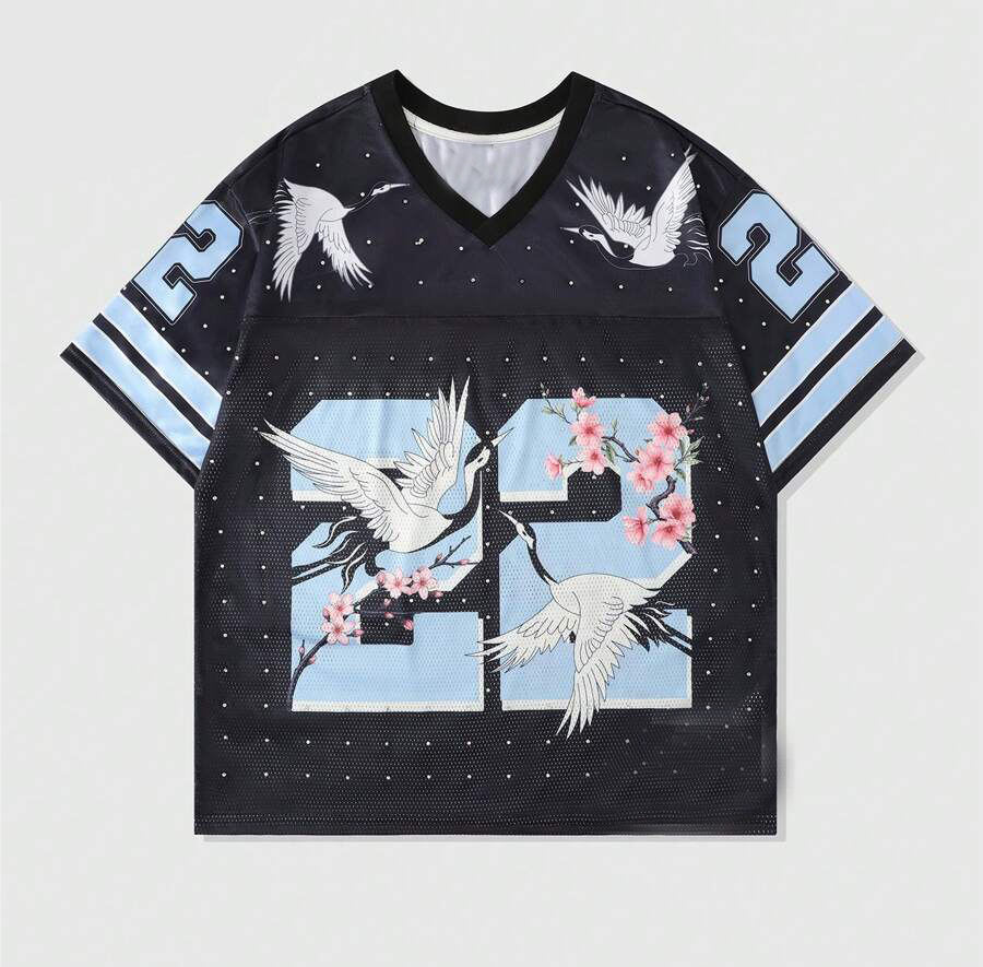 Plus Size American Football Jersey Breathable Polyester Mesh Summer Short Sleeve Uniform