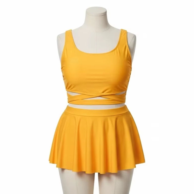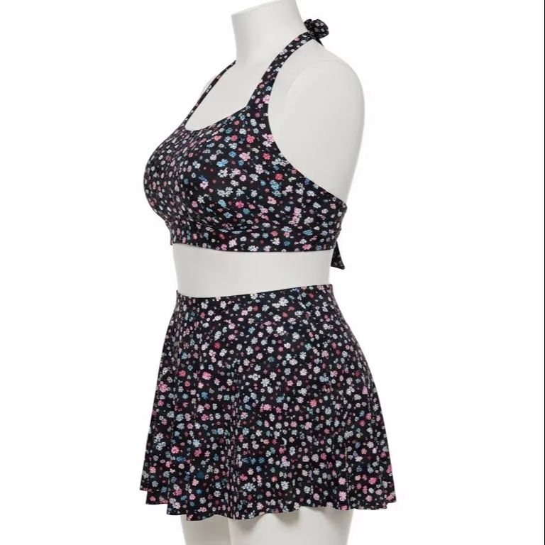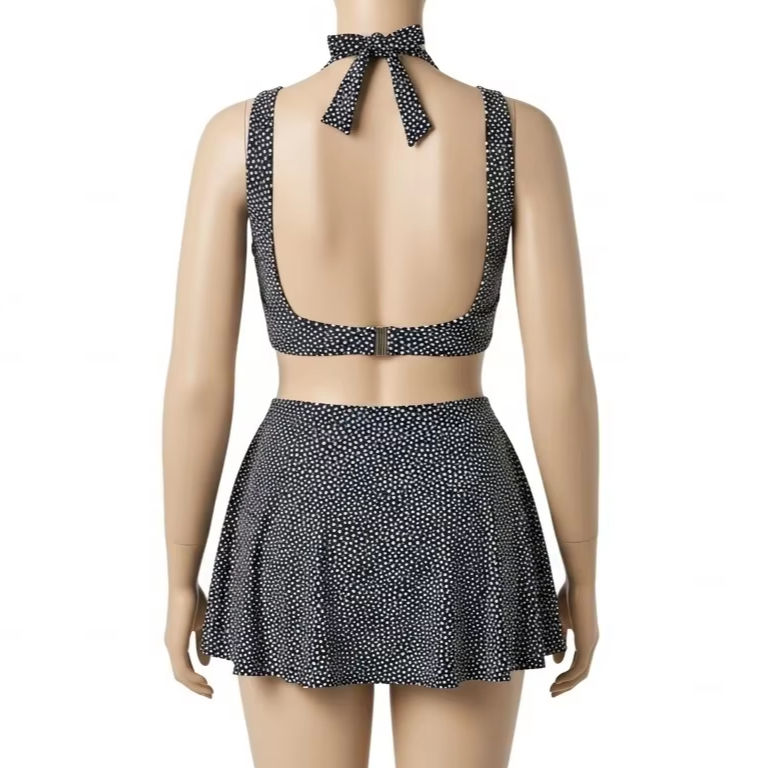 ชุดว่ายน้ำสองชิ้นแบบเปิดหลัง ไซส์พลัส ผ้าโพลีเอสเตอร์ผสมสแปนเด็กซ์ ยืดหยุ่น สวมใส่สบาย เหมาะสำหรับใส่ไปชายหาด สระว่ายน้ำ และรีสอร์ท