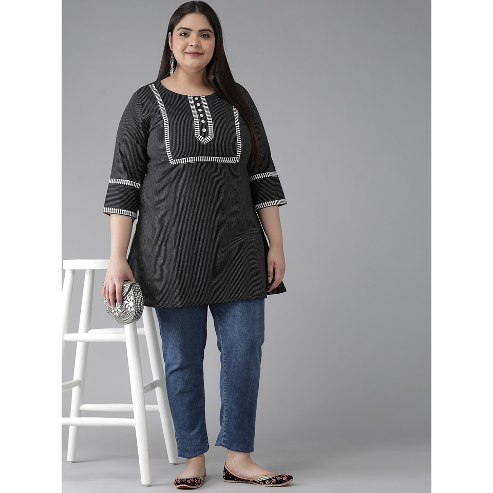 Kantha SHORT kurti ผ้าฝ้ายสีดำขนาดใหญ่พิเศษชุดลำลองสุดชิคสำหรับผู้หญิงเหมาะเป็นของขวัญสำหรับวันเกิดหรือโอกาสพิเศษ