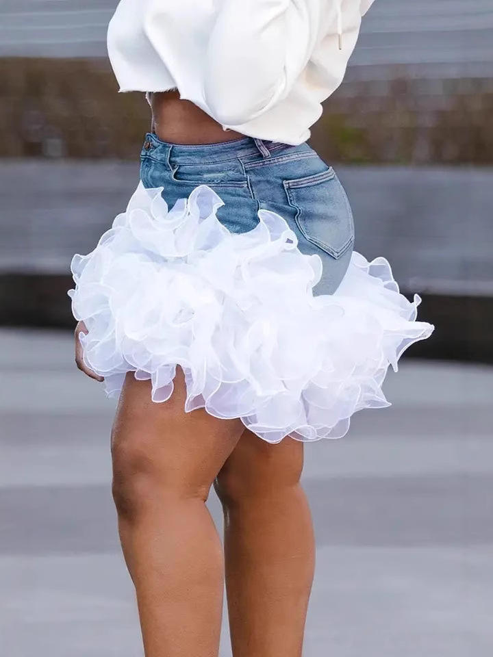กระโปรงผ้ายีนส์เอวสูงผู้หญิงกระโปรงมินิวินเทจเอวสูงมีกระเป๋าผ้าทูลลำลองสีน้ำเงินขนาดใหญ่พิเศษสำหรับฤดูร้อน