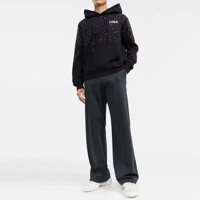 Plus Size Comfortable Plain Pullover Men Rhinestone Hoodies Good Quality Stylish durable Custom design Men Rhinestone Hoodies