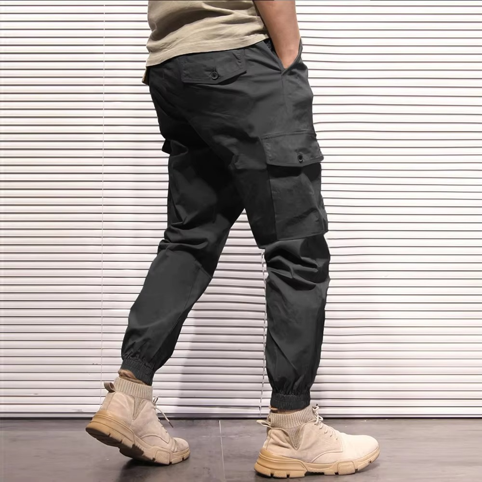 กางเกงคาร์โก้เอวยางยืดมีหลายกระเป๋าสำหรับผู้ชายกางเกงคอลเลกชั่นใหม่ขนาดพลัสไซส์