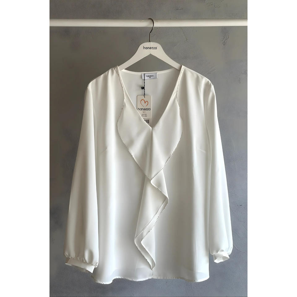 Plus Size Elegant Ruffle Evening Blouse - Needle Lace Beaded Detail - Jessica Fabric