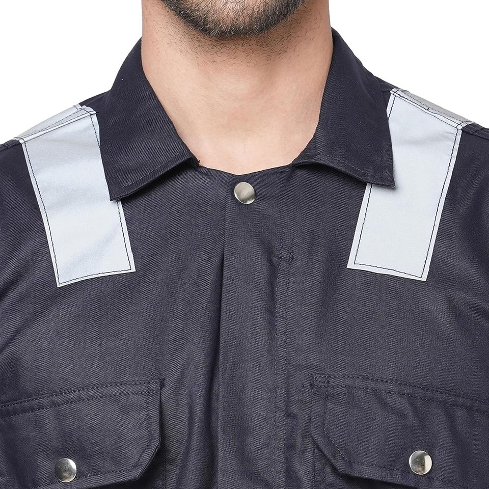 ชุดคลุมนิรภัยผ้าฝ้ายทอลายทแยงสีส้ม100% ขนาดพลัสไซส์ตัวแรกปลอดภัยพร้อมเทปสะท้อนแสงสำหรับชุดทำงาน