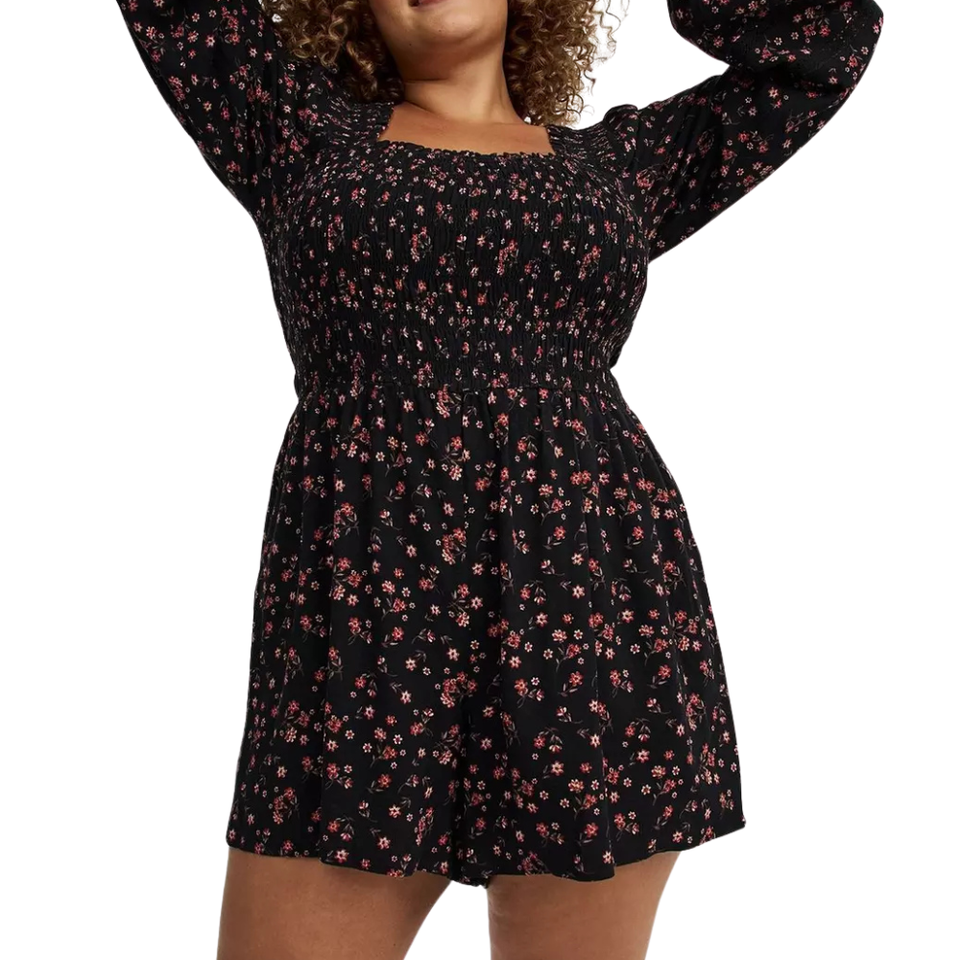 จั๊มสูทผู้หญิงไซส์ใหญ่ ลายดอกไม้ ความยาวปานกลาง สายเดี่ยว แขนสั้น ผูกเอว ผ้าระบายอากาศ ยืดหยุ่น นุ่ม