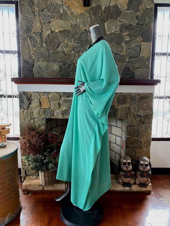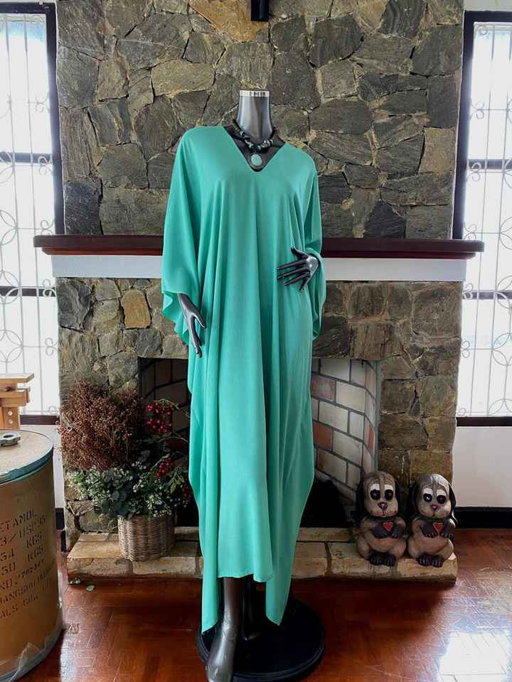 เดรสคาฟทันผ้าเรยอนย้อมสีเทอร์ควอยซ์แบบทำมือ ไซส์พลัส ทรงหลวม สไตล์โบโฮ สำหรับใส่พักผ่อน