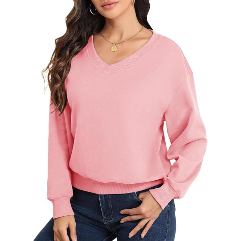 เสื้อสเวตเชิ้ตคอวีทรงยาวไซส์ใหญ่สำหรับผู้หญิงสำหรับฤดูหนาว | ผ้าฟลีซ 50% ผ้าฝ้าย 50% โพลีเอสเตอร์ | เสื้อพูลโอเวอร์แฟชั่นลายโลโก้สั่งทำสุดหรู