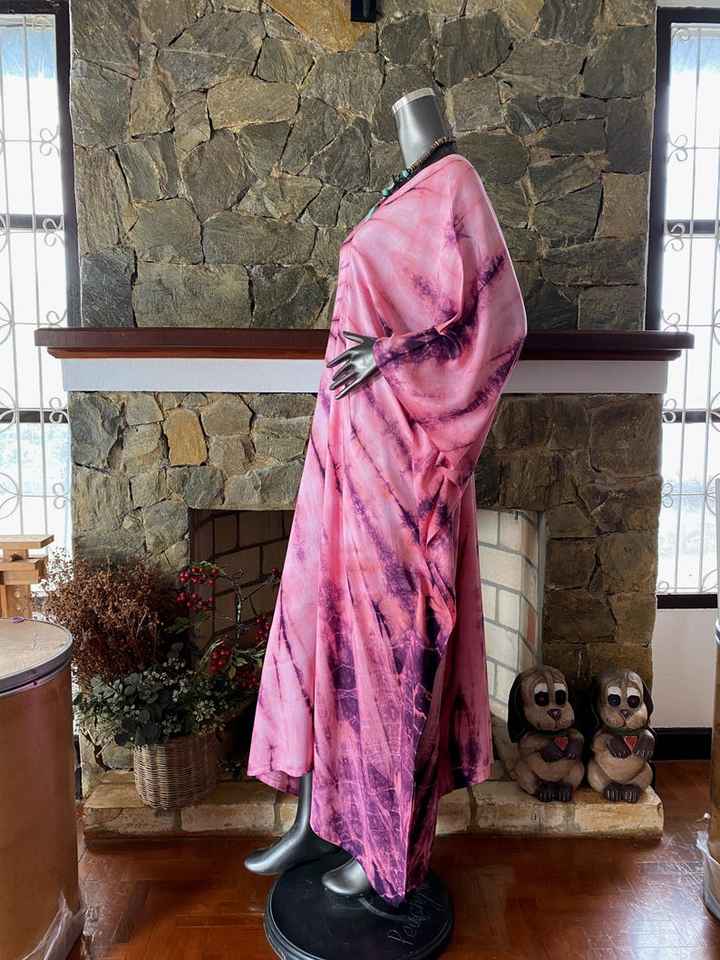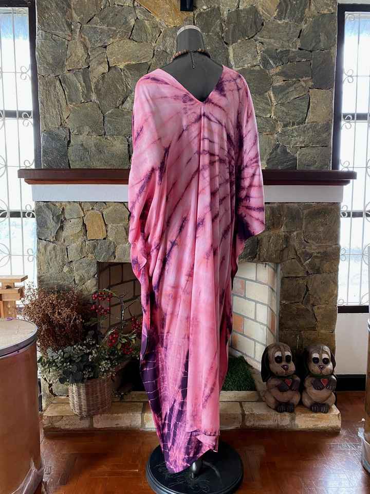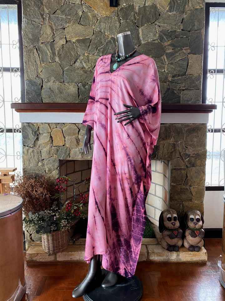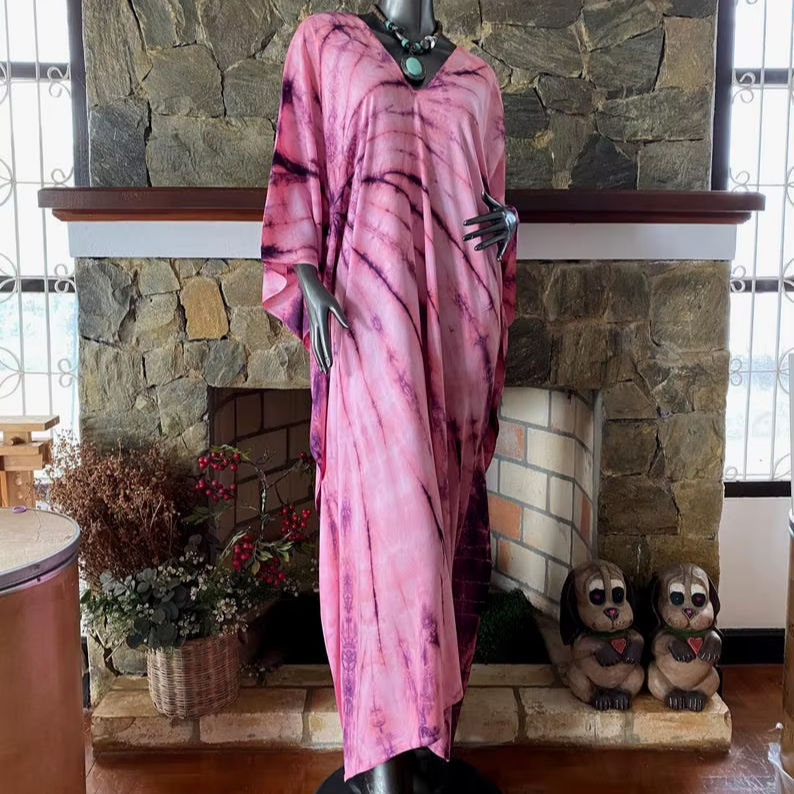 เดรสยาวทรงปล่อยสไตล์โบฮีเมียน ผ้าเรยอนมังคุดไซส์พลัส ลายมัดย้อมชิโบริ ใส่สบายเหมาะกับชายหาด